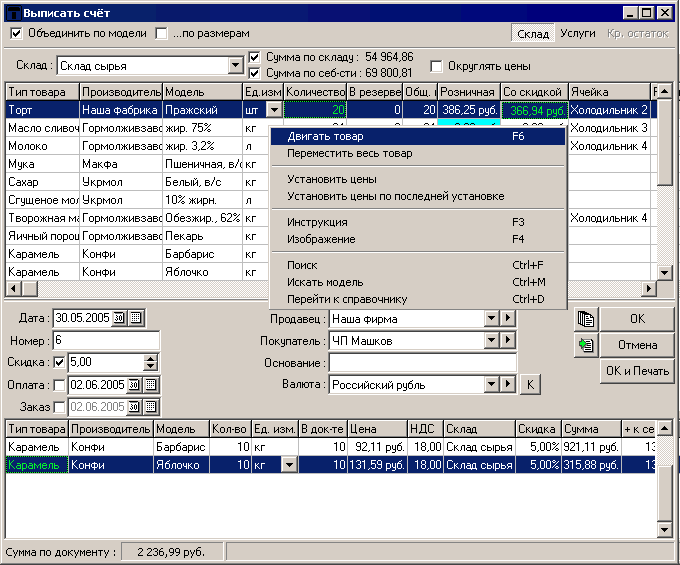 Программа позволяет проводить и оформлять все виды торговых